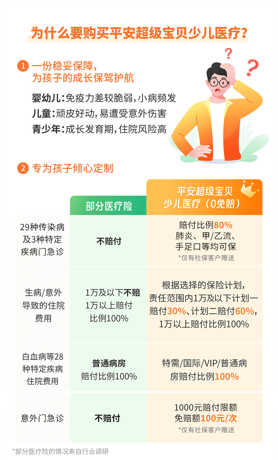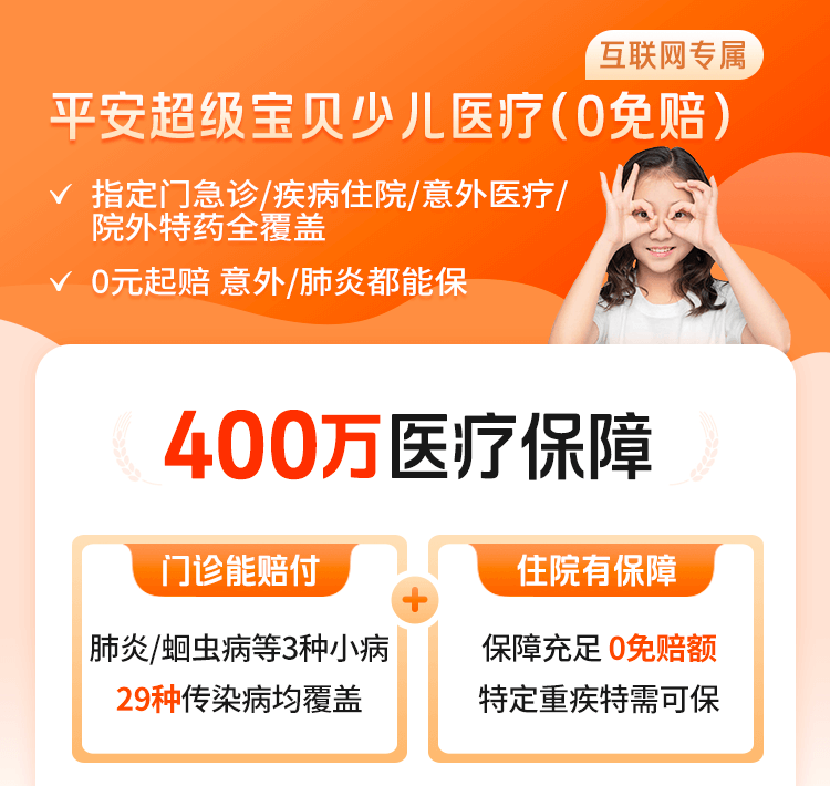 注:本产品为保险产品组合,由"平安互联网少儿宝贝医疗保险T款(平安健康〔2025〕医疗保险006号 ,平保健发〔2024〕334号)"、"平安互联网意外伤害1.0医疗保险T款 (平保健发〔2024〕285号,平安健康〔2024〕医疗保险045号)"、“平安附加互联网少儿门诊医疗保险(平保健发〔2023〕51号、平安健康〔2025〕医疗保险006号)”条款组成,如您有任何问题请联系在线客服