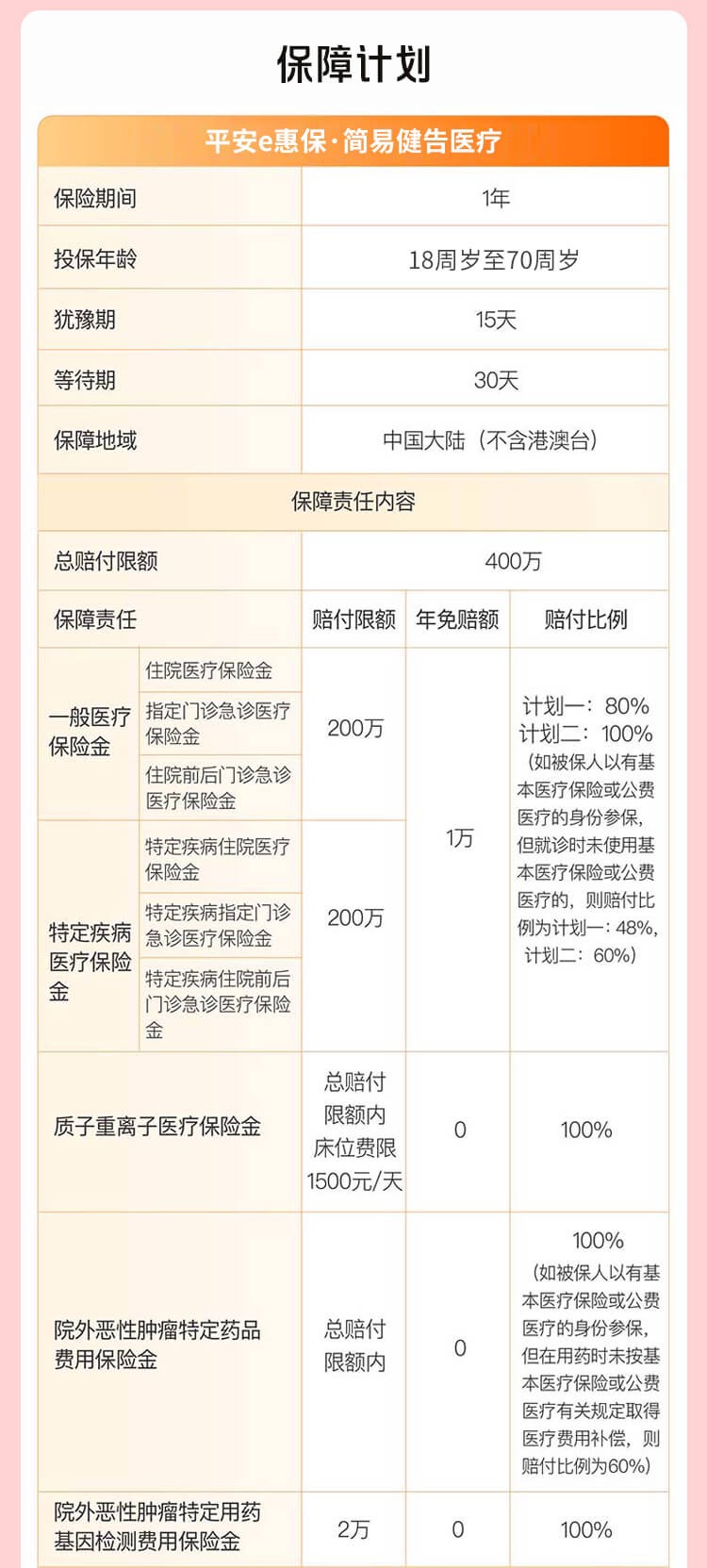 注:本产品适用条款:"平安互联网e惠保医疗保险 (平保健发〔2023〕207号,平安健康〔2023〕医疗保险032号)",如您有任何问题请联系在线客服
