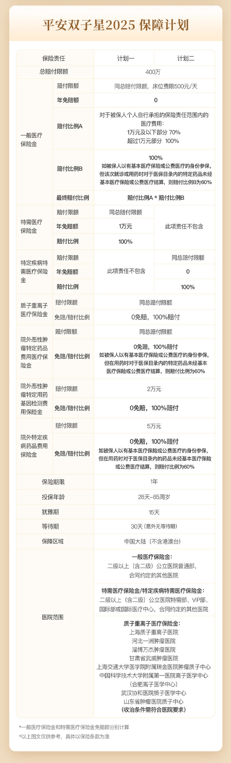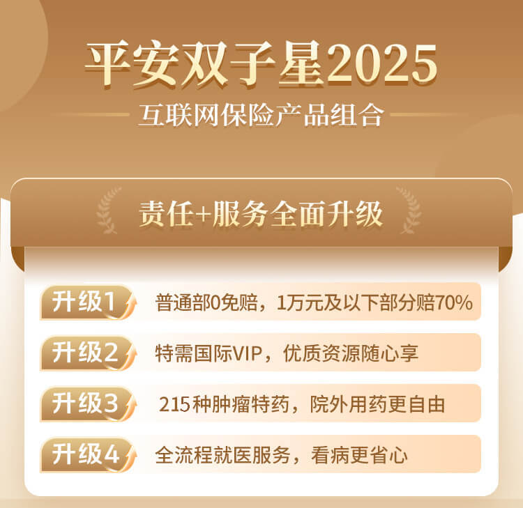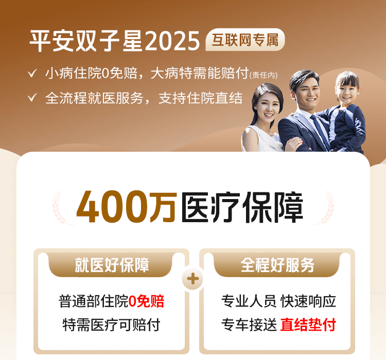 注:本产品为保险产品组合,由"平安互联网双子星住院2.0医疗保险T款 (平安健康〔2024〕医疗保险049号,平保健发〔2024〕324号)"条款组成,如您有任何问题请联系在线客服