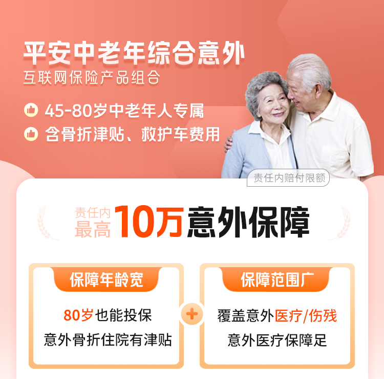 注:本产品为保险产品组合,由"平安互联网意外伤害保险(平保健发〔2021〕342号,平安健康〔2021〕意外伤害保险112号)"、"平安互联网意外伤害1.0医疗保险T款 (平保健发〔2024〕285号,平安健康〔2024〕医疗保险045号)"条款组成,如您有任何问题请联系在线客服